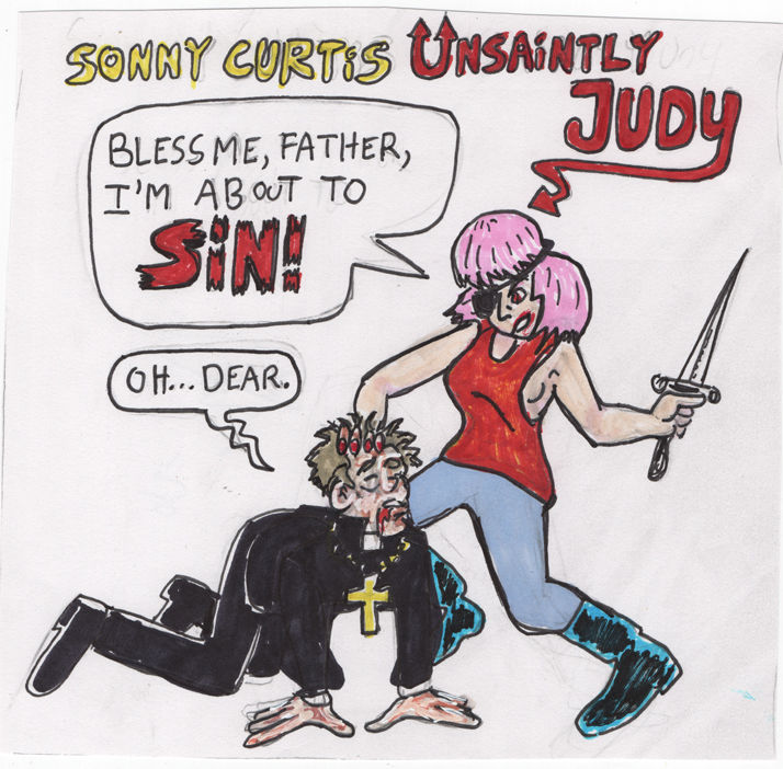 First, it's a play on the idea that picture sleeves for records are essentially cartoons: Images and text used in unison to tell a story. In most cases, the original pic sleeve's story is "buy this record." For Sketchbook Picture Sleeves the story is whatever dumb joke or pun feels right, hopefully avoiding a direct interpretation of the song's true narrative.